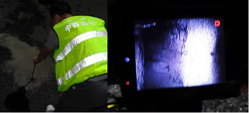 對探測發(fā)現(xiàn)的一處大型空洞災(zāi)害點進(jìn)行釬探并采用電子內(nèi)窺鏡檢查地下空洞內(nèi)部情況。